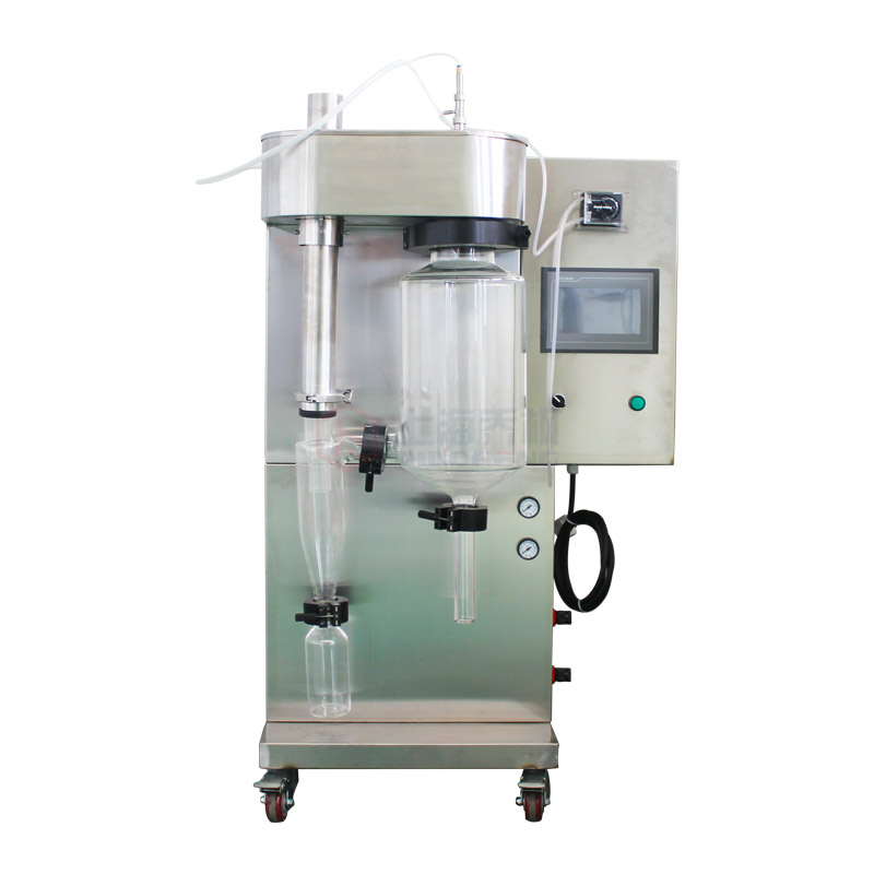 小型 實驗型 微型噴霧干燥機(噴霧干燥儀/噴霧干燥機)及其主要適用于高校、研究所和食品醫(yī)藥化工企業(yè)實驗室生產(chǎn)微量顆粒粉末,對所有溶液如乳濁液、懸浮液具有廣譜適用性, 適用于對熱敏感性物的干燥如生物制品、生物農(nóng)藥、酶制劑等,因所噴出的物料只是在噴成霧狀大小顆粒時才受到高溫,故只是瞬間受熱,能保持這些活性材料在干燥后仍維持其活性成份不受破壞。二、實驗型噴霧干燥機特點: