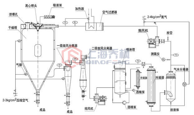 系統(tǒng)化技術(shù)應(yīng)用于物料干燥的一種方法。于干燥室中將稀料經(jīng)霧化后,在與熱空氣的接觸中,水分迅速汽化,即得到干燥產(chǎn)品。該法能直接使溶液、乳濁液干燥成粉狀或顆粒狀制品,可省去蒸發(fā)、粉碎等工序。