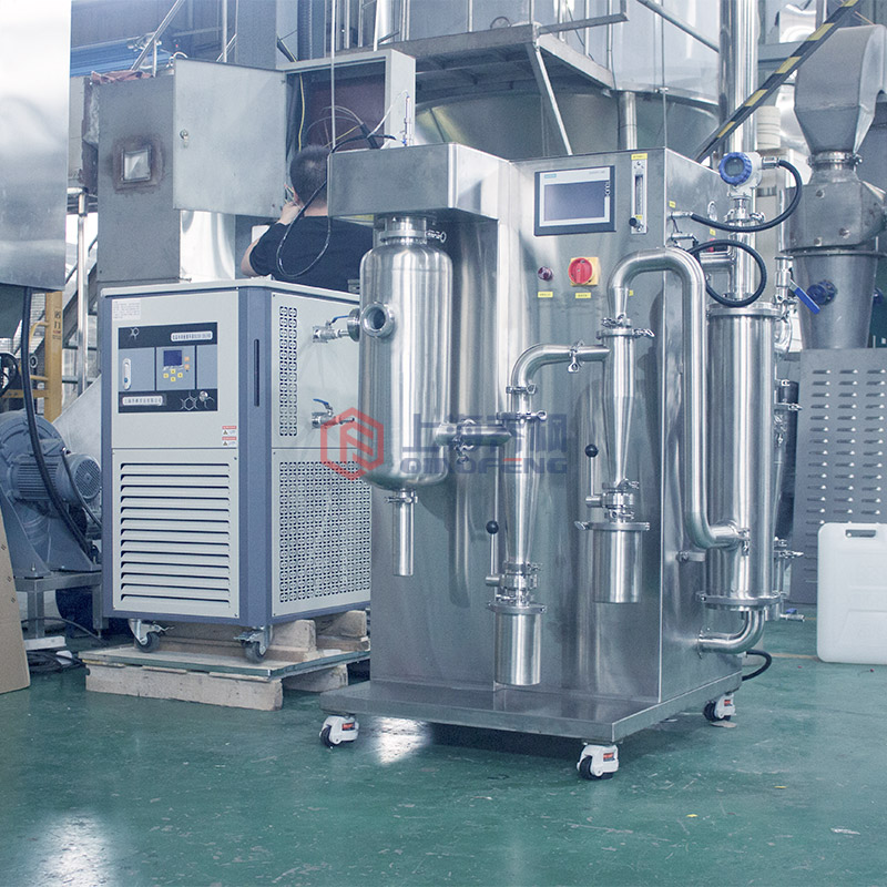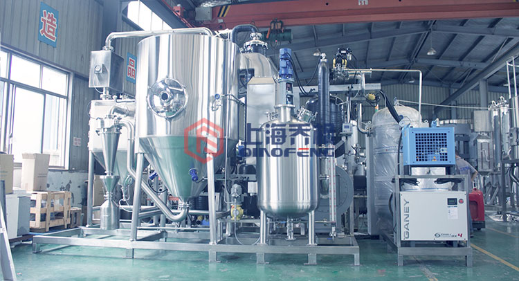 閉式循環(huán)噴霧干燥機(jī)是一種常見(jiàn)的干燥設(shè)備,它的工作原理是將液態(tài)物質(zhì)通過(guò)噴嘴噴入干燥室中,并在高溫高壓下蒸發(fā)成為氣體,再將這些氣體通過(guò)冷凝器凝結(jié)成為粉末狀物質(zhì)。在整個(gè)過(guò)程中,干燥室內(nèi)的氣體是通過(guò)循環(huán)系統(tǒng)反復(fù)循環(huán),以達(dá)到提高能源利用率和減少排放的目的。